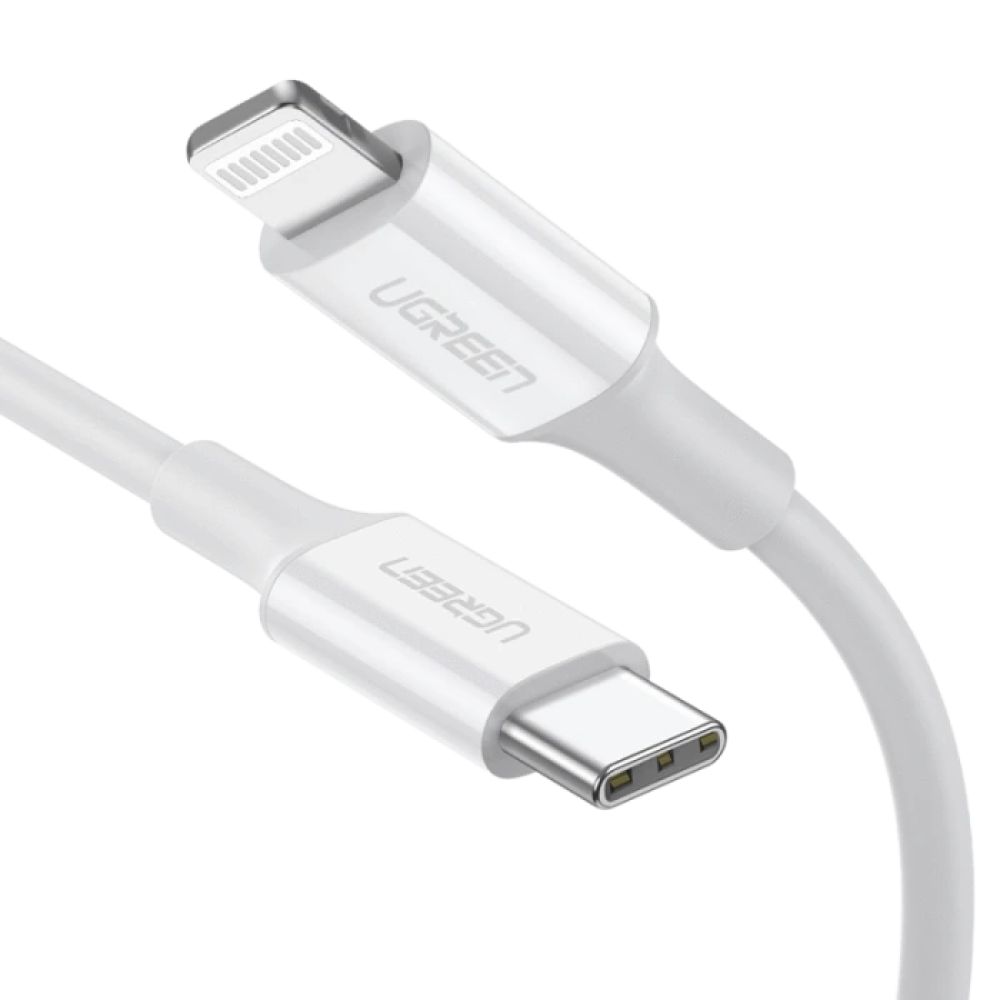 يوجرين -سلك شاحن من ايفون إلى USB-C مطلي بالنيكل بطول 1.5 م وبقوة 60 واط - أبيض
