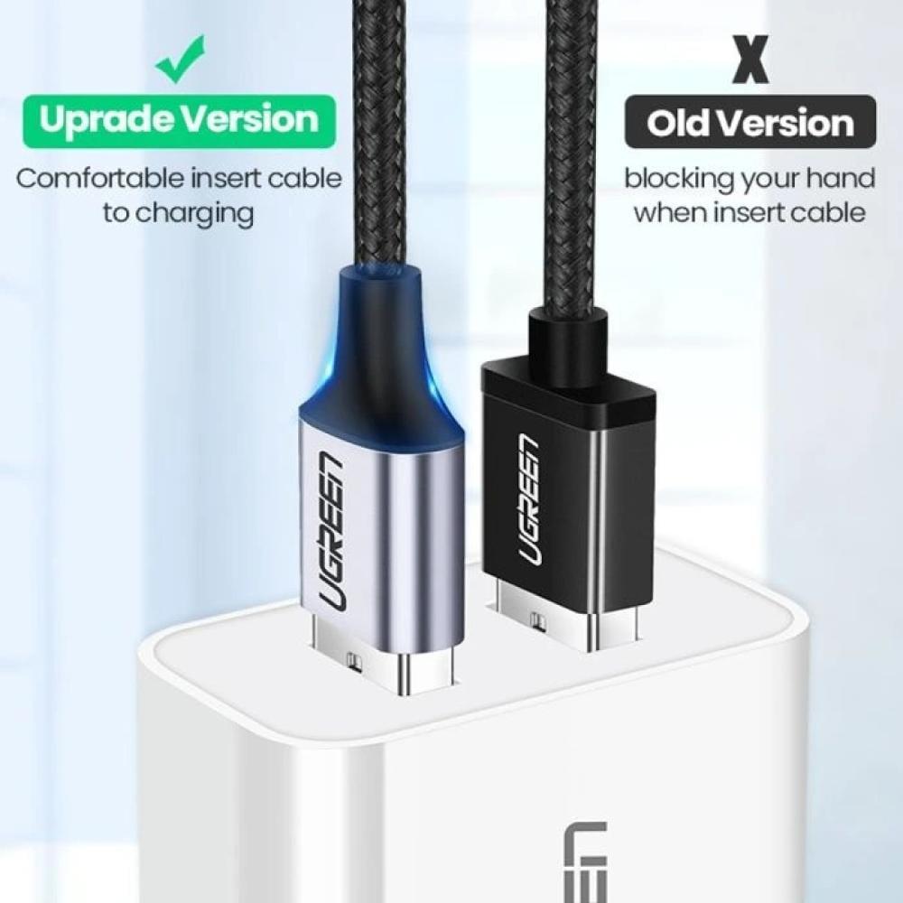 يوجرين - سلك شاحن من USB إلى USB-C مضفر بطول 3 م - رمادي