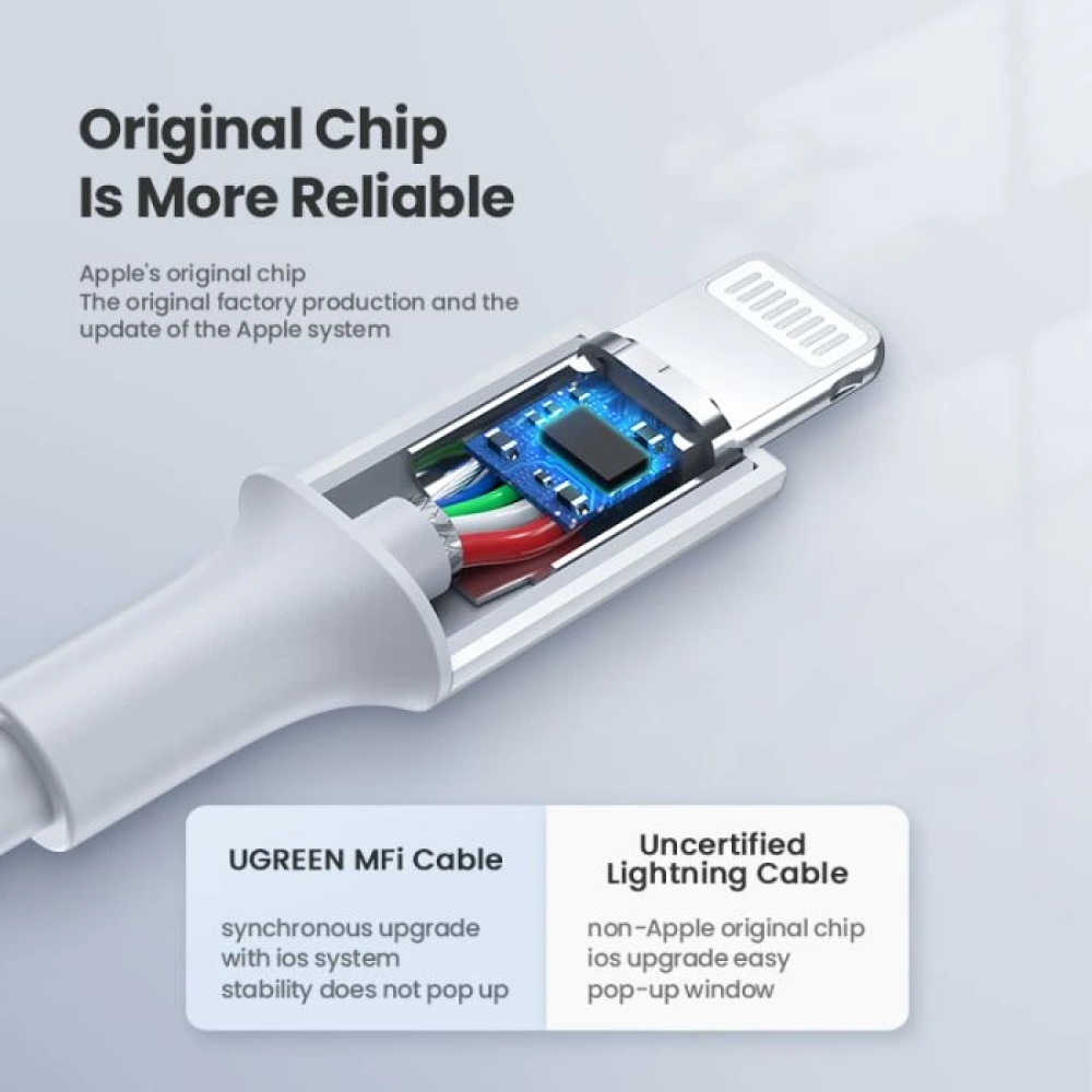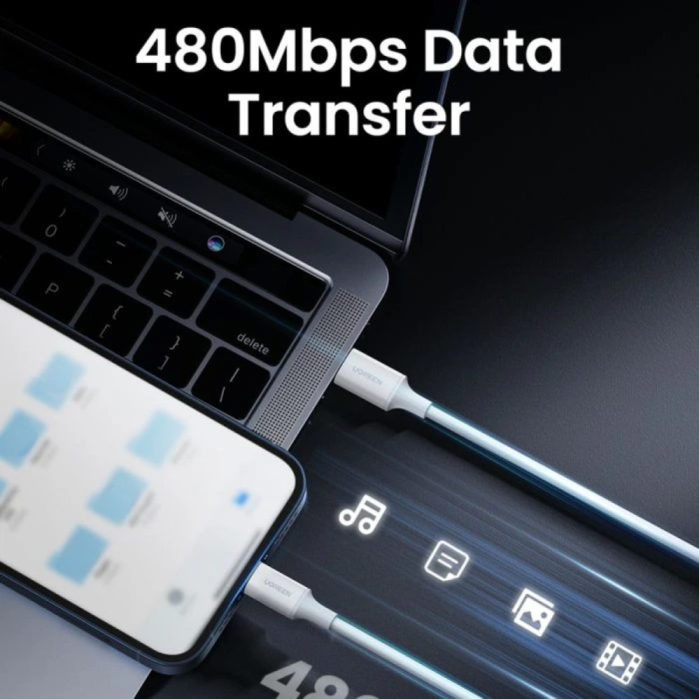 يوجرين -سلك شاحن من USB-C إلى آيفون بطول 2 م - أبيض