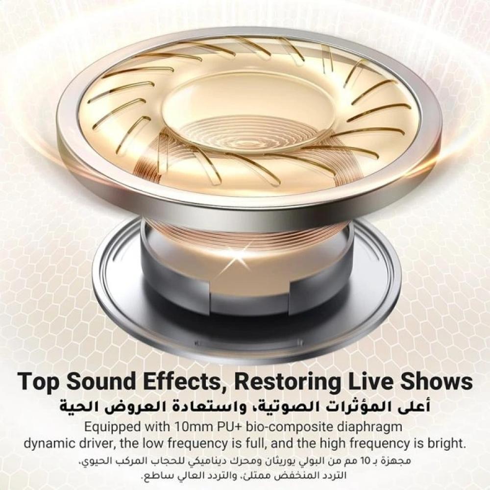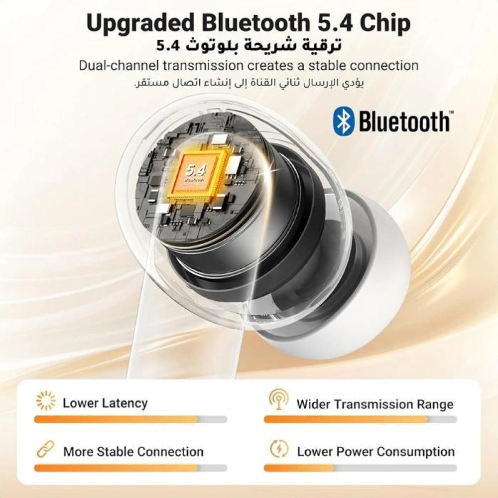 يوجرين - سماعة أذن لاسلكية HiTune T3 Pro مع خاصية إلغاء الضوضاء النشط - أبيض