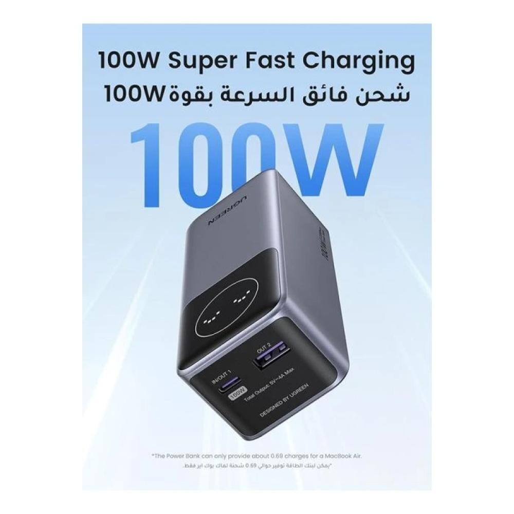 يوجرين -شاحن متنقل نيكسود بشاشة ديجيتال ذكية بسعة 12000 مللي أمبير وبقوة 100 واط - رمادي